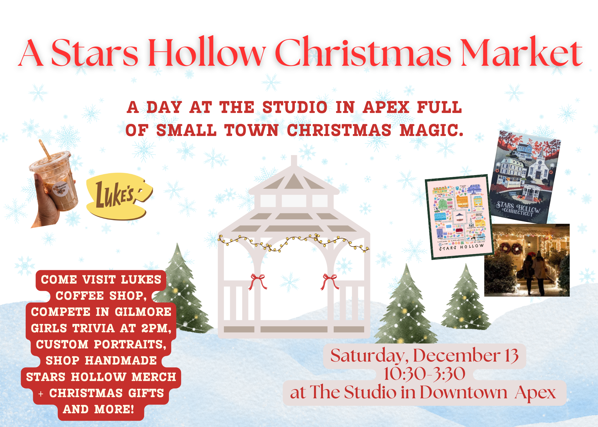 Join us for a holiday market celebrating all things Gilmore Girls by drinking Luke's coffee, competing in trivia, shopping Rory's Bookshelf, get your custom hand drawn portrait made of YOU in Stars Hollow and so much more fall fun.