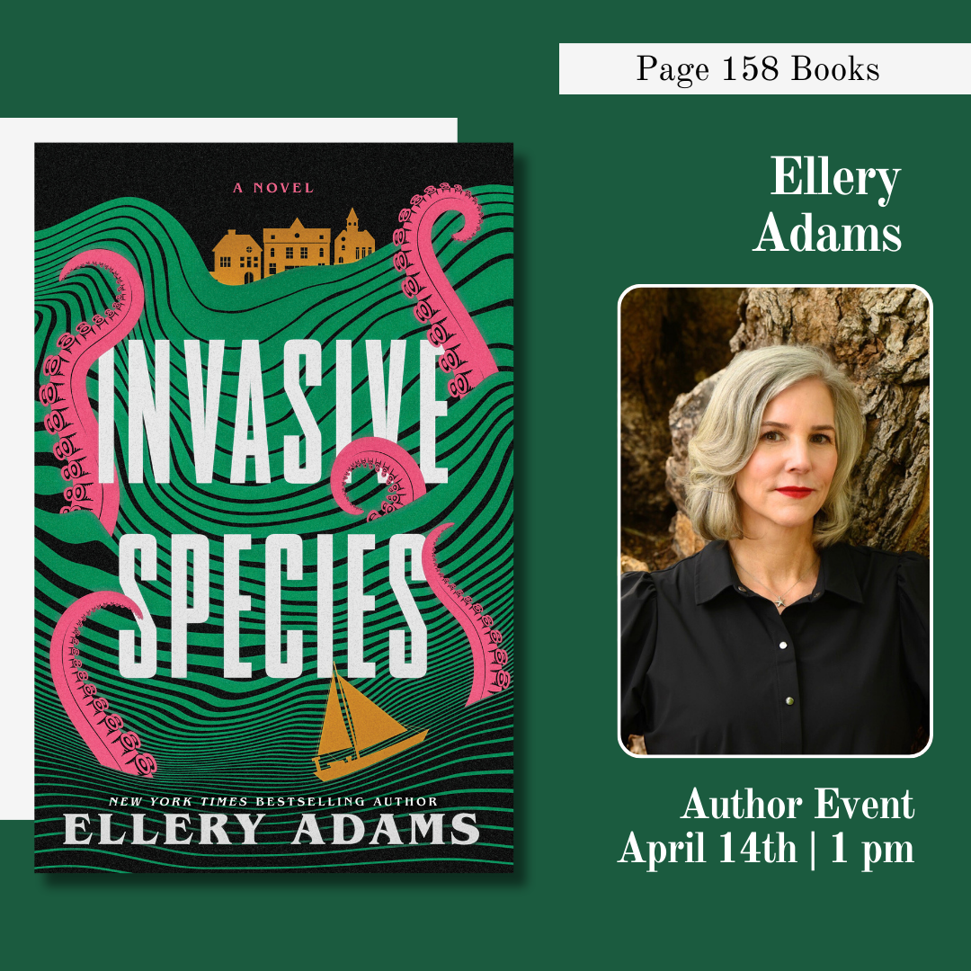 Page 158 Books is excited to welcome back author Ellery Adams back to celebrate the release of her book, Invasive Species. This is a lunch time event. Please visit the website to order a boxed combo from The Lemon Tree.
