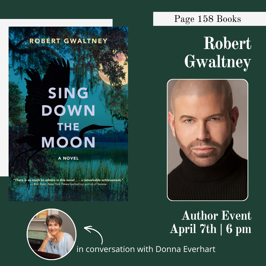 Join Page 158 Books as we welcome back author Robert Gwaltney to celebrate his novel, Sing Down the Moon--a Southern Gothic tale of generational trauma exploring inheritance, addiction, identity. It’s a story about the legacies, particularly the legacies that women carry, the ghosts we inherit, and the costs of breaking free.