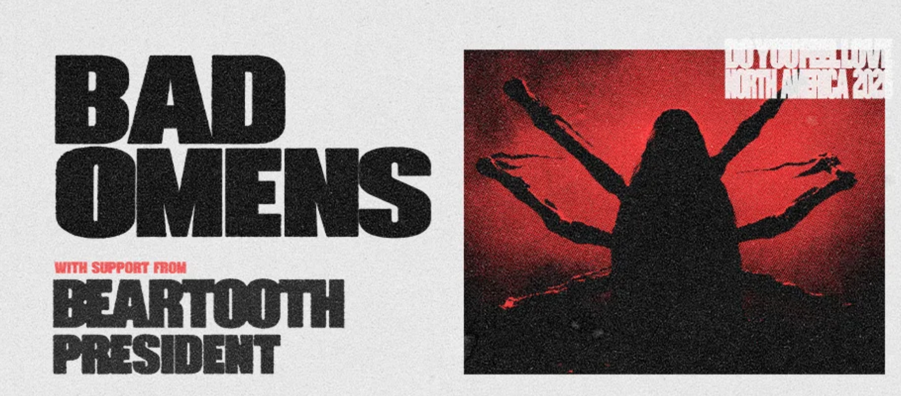 Bad Omens is a heavy metal/rock band announcing the "Do You Feel Love" North American 2026 arena tour with special guests Beartooth and President.