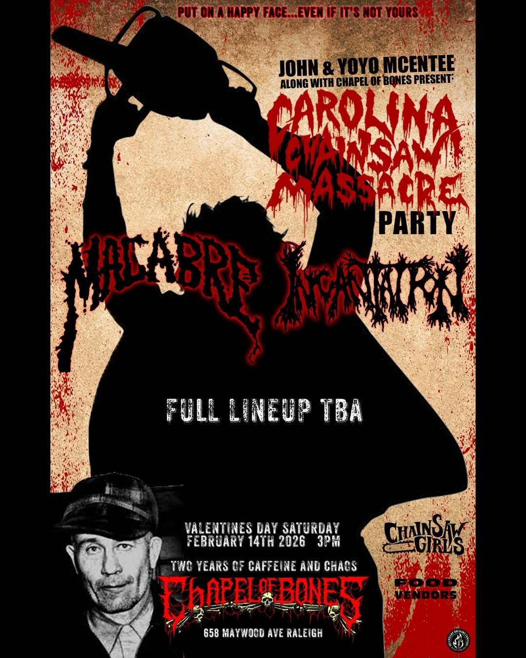 The Carolina Chainsaw Party marks the official halfway point to the legendary Carolina Chainsaw Massacre, the horror-fueled extreme metal gathering curated annually by John and Yoyo McEntee. While this year is not the full festival, this event serves as a brutal checkpoint, a celebration, and a warning shot of what’s still to come.