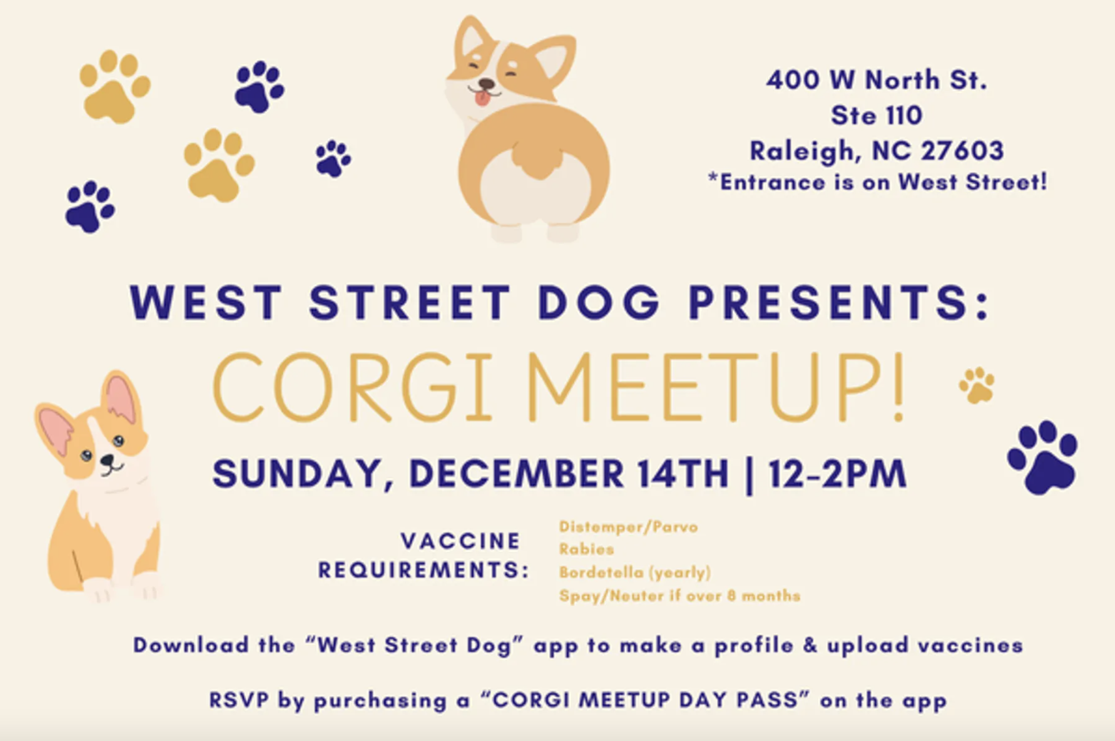 ๐พPlease RSVP for this event by purchasing a "Corgi Meetup Day Pass" on the West Street Dog app.