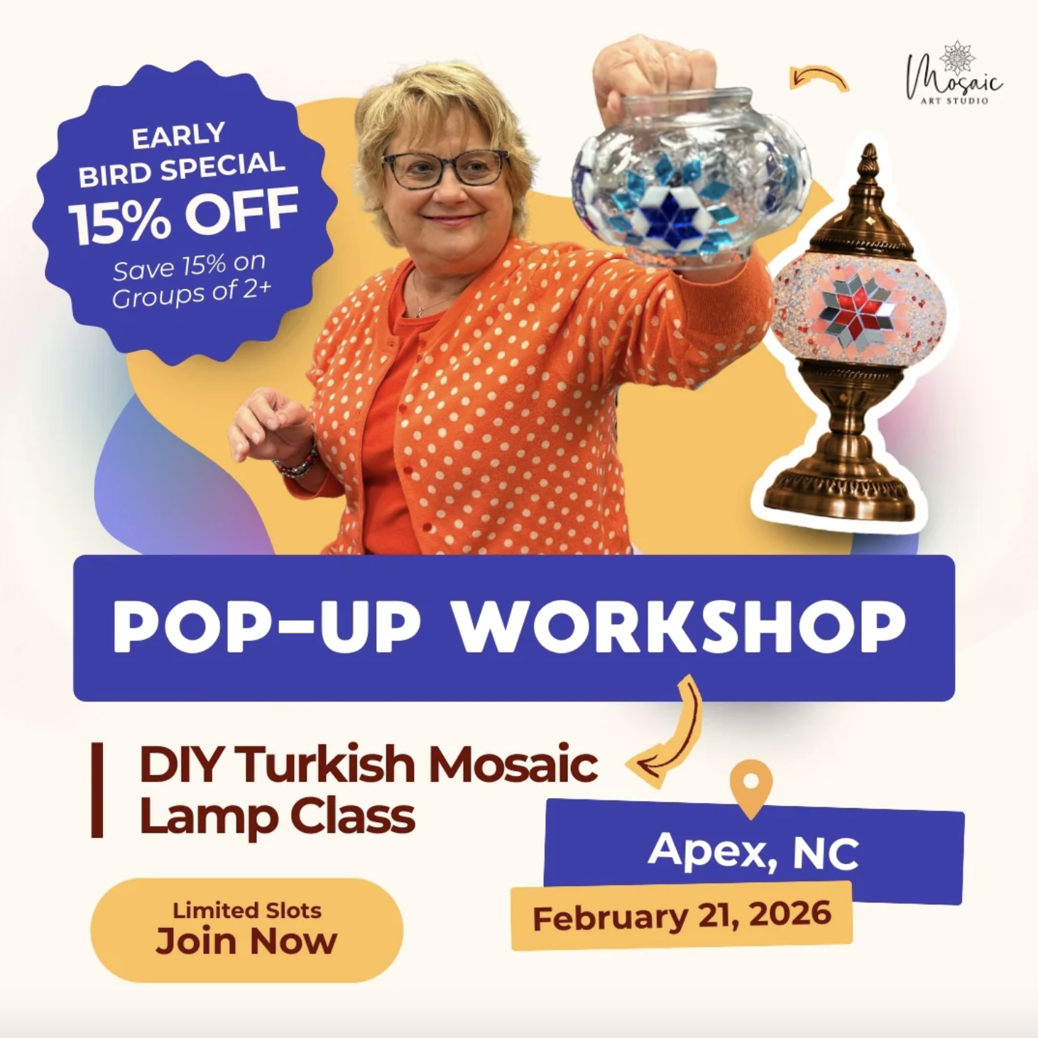 Join this beginner-friendly workshop with expert guidance and dive into mosaic artistry effortlessly! No prior skills required!