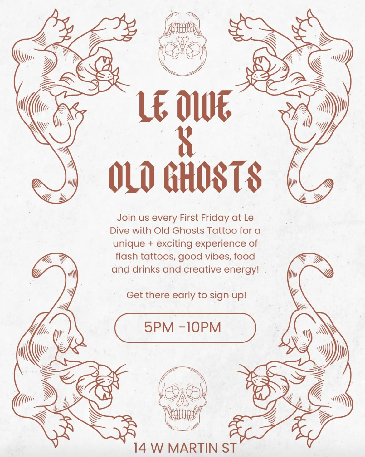 Join Le Dive and Old Ghosts Tattoo for a unique experience every First Friday in Raleigh! Le Dive, teams up with Old Ghosts Tattoo for an exciting night of flash tattoos, good vibes, drinks and food and creative energy!