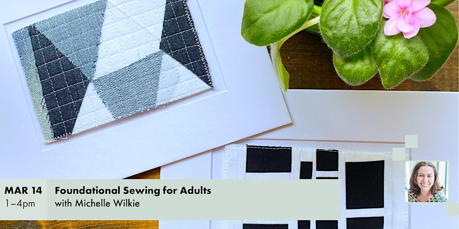 Join studio artist Michelle Wilkie for a beginner-friendly sewing class for adults with little to no experience. Learn the basics of machine and hand sewing, including threading needles, sewing seams, and finishing edges.