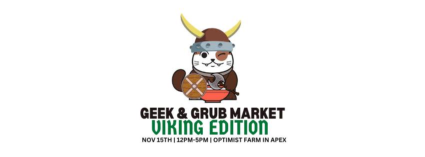 Grab your sword, axes and shields and come out and join us for the return of our VIKING Edition of the Geek and Grub Market at the Optimist Farm in Apex! The Geek and Grub Market is a family friendly event featuring fun geektastic activities, food and tons of Geektastic vendors!