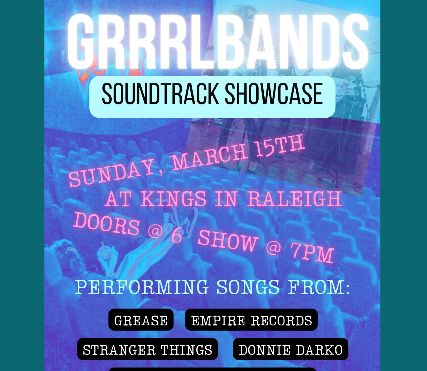 Let’s get ready to rrrrrumble. GrrrlBands is bringing their Soundtrack Showcase to Kings! Our showcase features five themed bands (this season: Grease, Guardians of the Galaxy, Stranger Things, Empire Records, and Donnie Darko). Each band has been rehearsing for eight weeks, and our showcases always bring out a supportive, enthusiastic crowd!