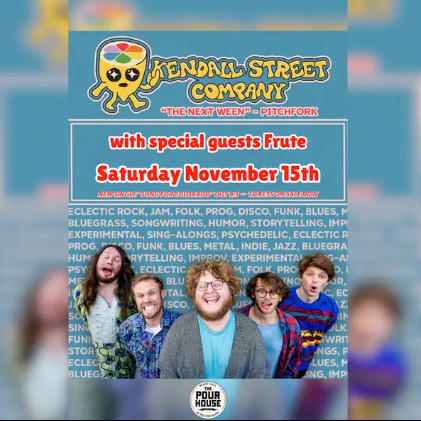 Virginia's Kendall Street Company are no strangers to having a wild time. The genre-fluid, eclectic rock ensemble has drawn varied comparisons to the dynamic jams of Umphrey's McGee and Widespread Panic, songwriting of John Prine, experimental psychedelia of Pink Floyd, progressive jazz-infused rock of Frank Zappa, and off-color humor of Ween and They Might Be Giants. Including elements of crowd participation, off-the-cuff comedic bits, haphazard choreography, musical improvisation, and surprise musical guests, each Kendall Street Company concert is an experience unlike any other. You'll laugh, you'll cry. Just remember to stay hydrated.