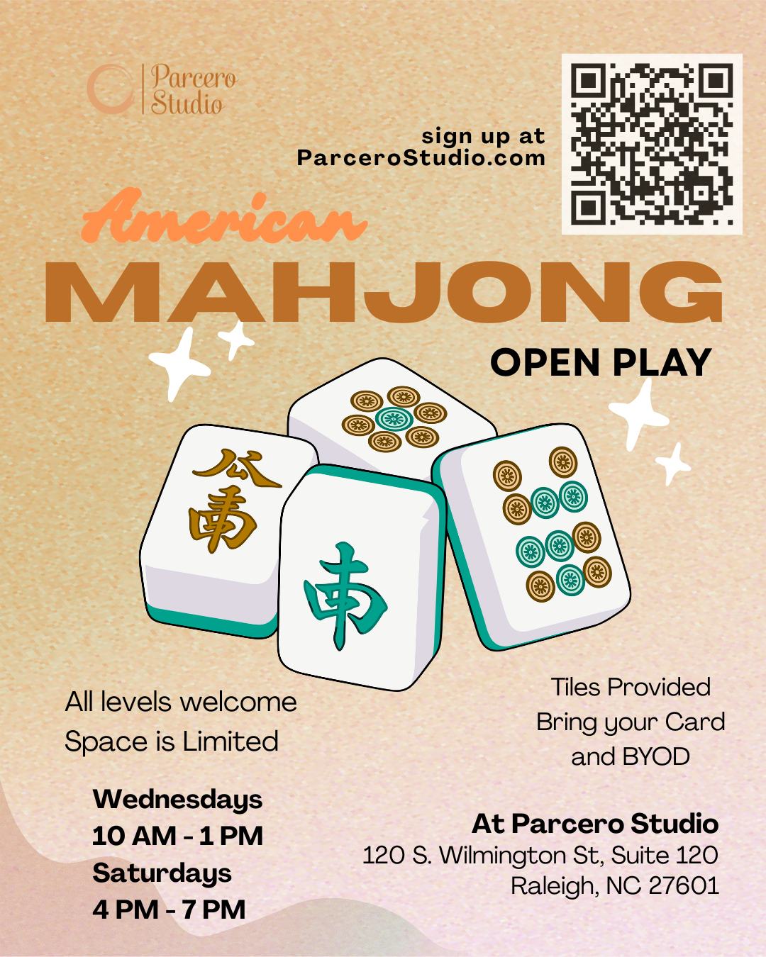 Do you play American Mahjong? Mahj at Parcero is a relaxed, social mahjong gathering. Whether you’re brand new to the game or a seasoned player, this is a welcoming space to play and unwind. Expect good conversation, friendly tables, and a cozy atmosphere. Bring your own drink and your Mahjong card. Come solo or with friends, and enjoy a good time with tiles, laughs, and community. No pressure, no competition — just a fun way to connect.
