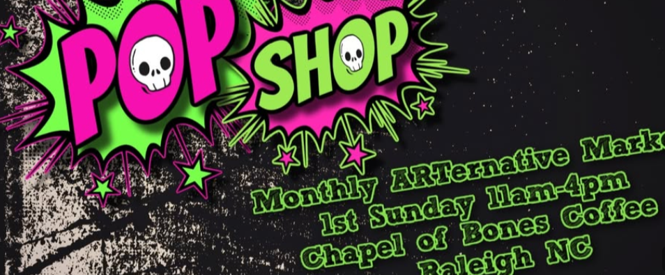 Pop Shop is back!!! A monthly art market event at Chapel of Bones coffee in Raleigh, NC! This will be an all-ages event featuring products from a variety of local creators and makers.