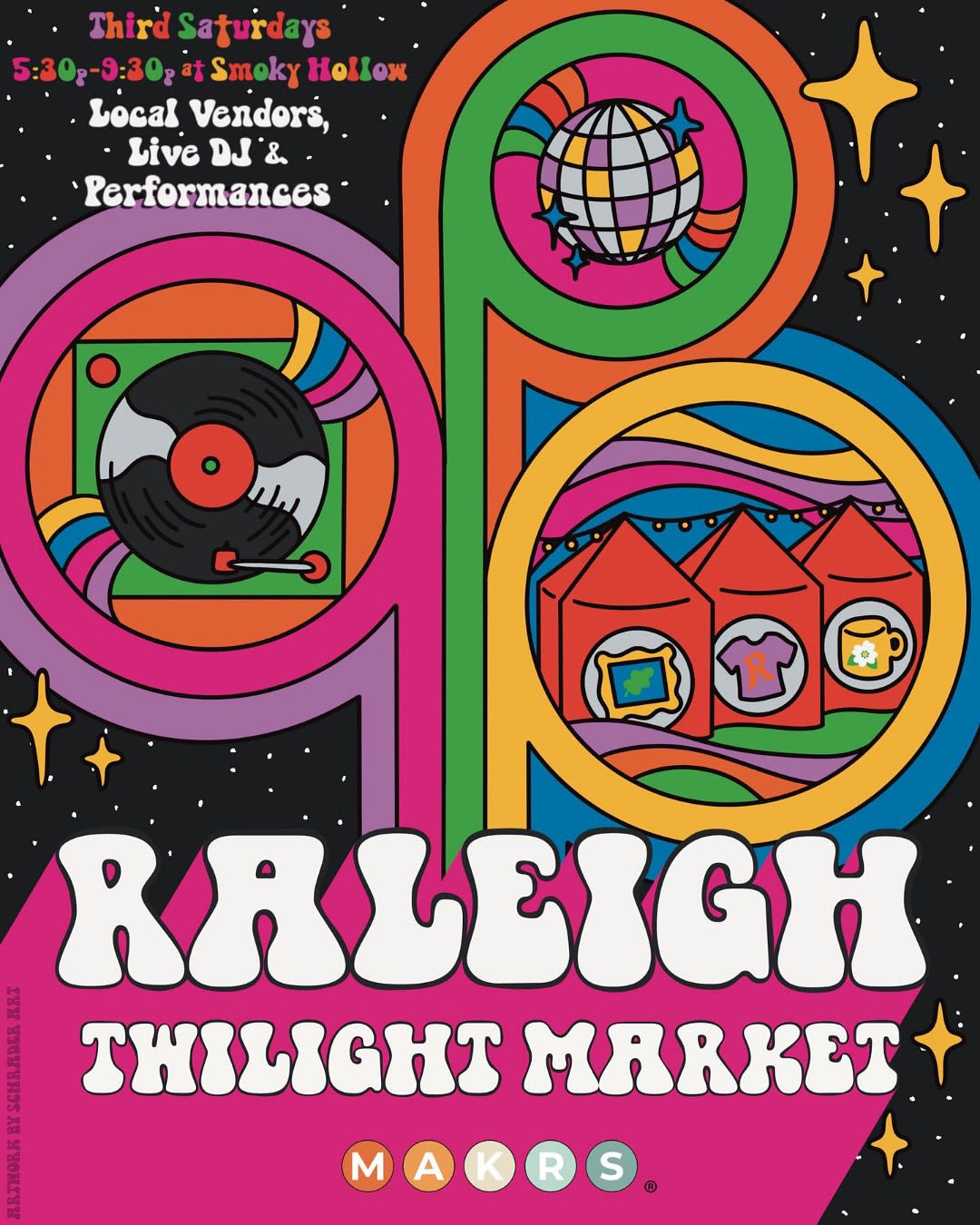 The MAKRS Society presents: The Raleigh Twilight Market: a night market series on the 3rd Saturday of each month featuring local vendors, a live DJ, live performances, beer and wine.