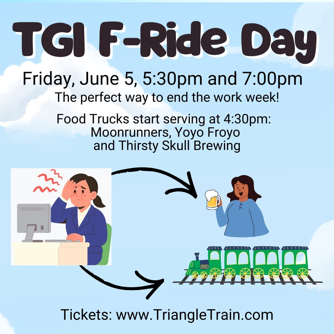 From mouthwatering food to craft beverages and a relaxing ride on the rails, TGI F-Ride Day has everything you need to recharge and celebrate the start of your weekend. Don’t miss the inaugural event — gather your friends, hop on board, and make Friday night your new favorite time of the week!