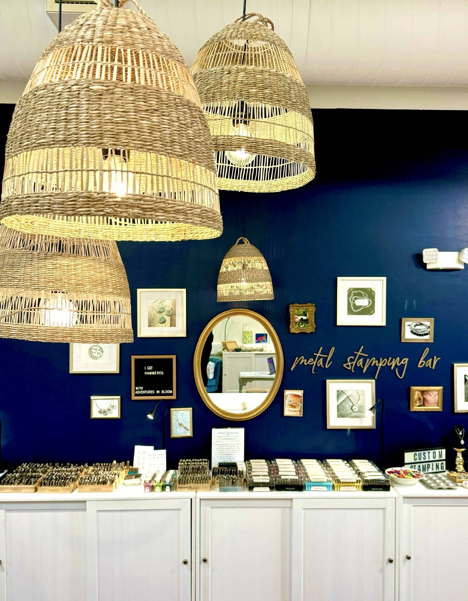 Adventures in Bloom is now a gift shop and craft space located in the heart of Downtown Apex, North Carolina. We offer metal stamped jewelry classes as well as local and curated goods from over 30 different makers. Local makers are also invited in to host weekly workshops every Thursday - recent workshops have included cookie decorating, candle pouring, and watercolor. We have also have a Bead Bar where you can string up your own bracelets and permanent jewelry all available to walk ins all the time!