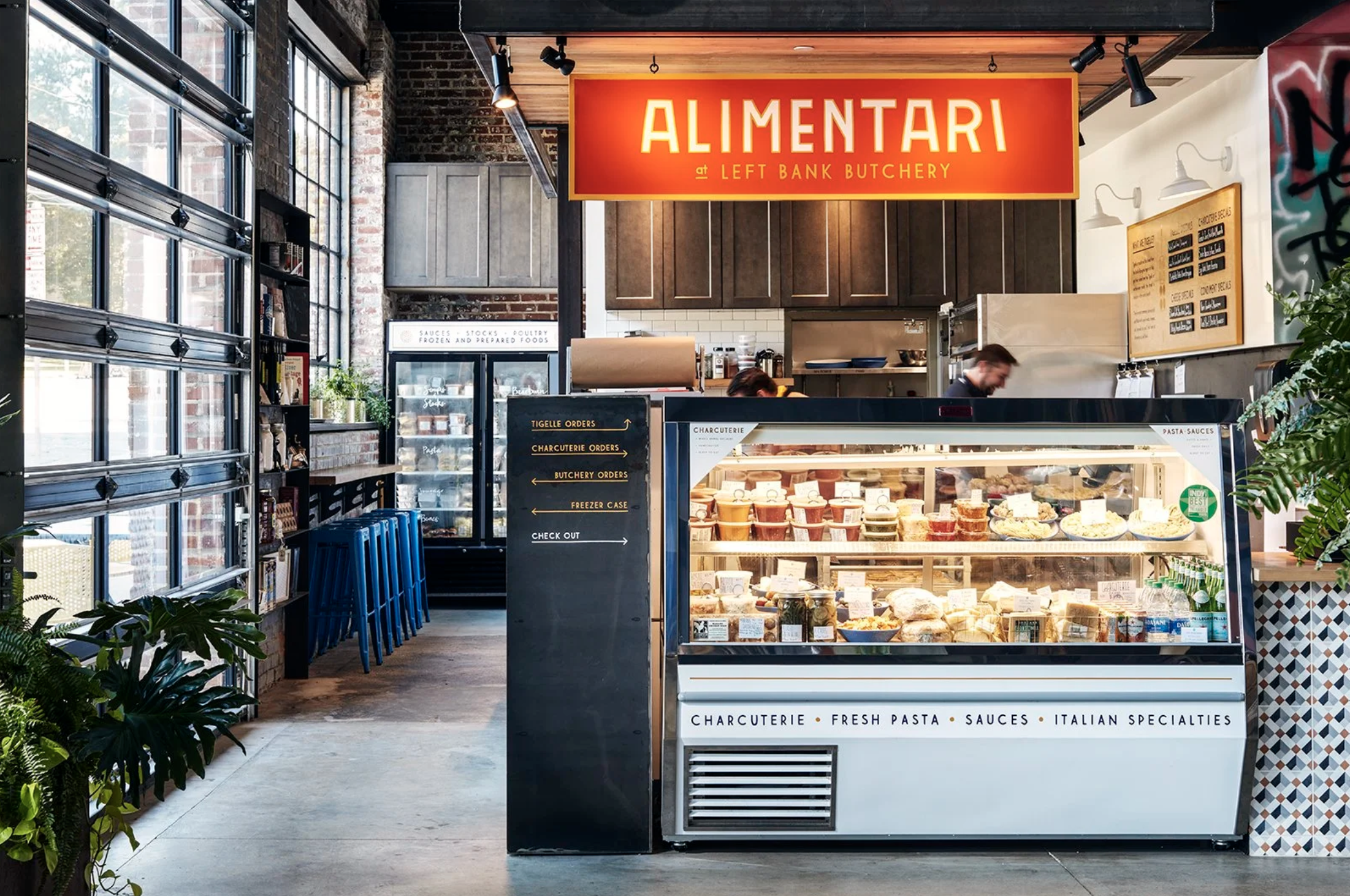 Alimentari at Left Bank is a collaboration between Josh DeCarolis of Durham's Mother & Sons and Left Bank Butchery out of Saxapahaw, N.C. featuring fresh pasta by the pound, Italian tigelles and a whole a butchery/charcuterie shop.