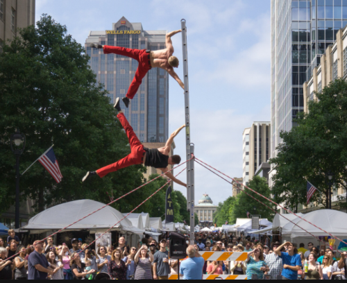 Since its first festival in April 1980, Artsplosure has presented scores of outdoor programs and large-scale festivals featuring thousands of established and emerging visual, performing, and interdisciplinary artists in numerous traditional and non-traditional indoor venues and outdoor settings. Artsplosure was initially organized in 1978 by the Raleigh Arts Commission to produce high quality and accessible arts festivals, and to serve as an umbrella organization for emerging and established arts groups seeking to reach wider audiences. The first event was remarkable: a citywide arts festival that combined an “explosion” of art activity with people’s “exposure” to all types of art. This month-long celebration of the arts featured 58 different performing groups and presented 560 artists in 16 sites around the city.