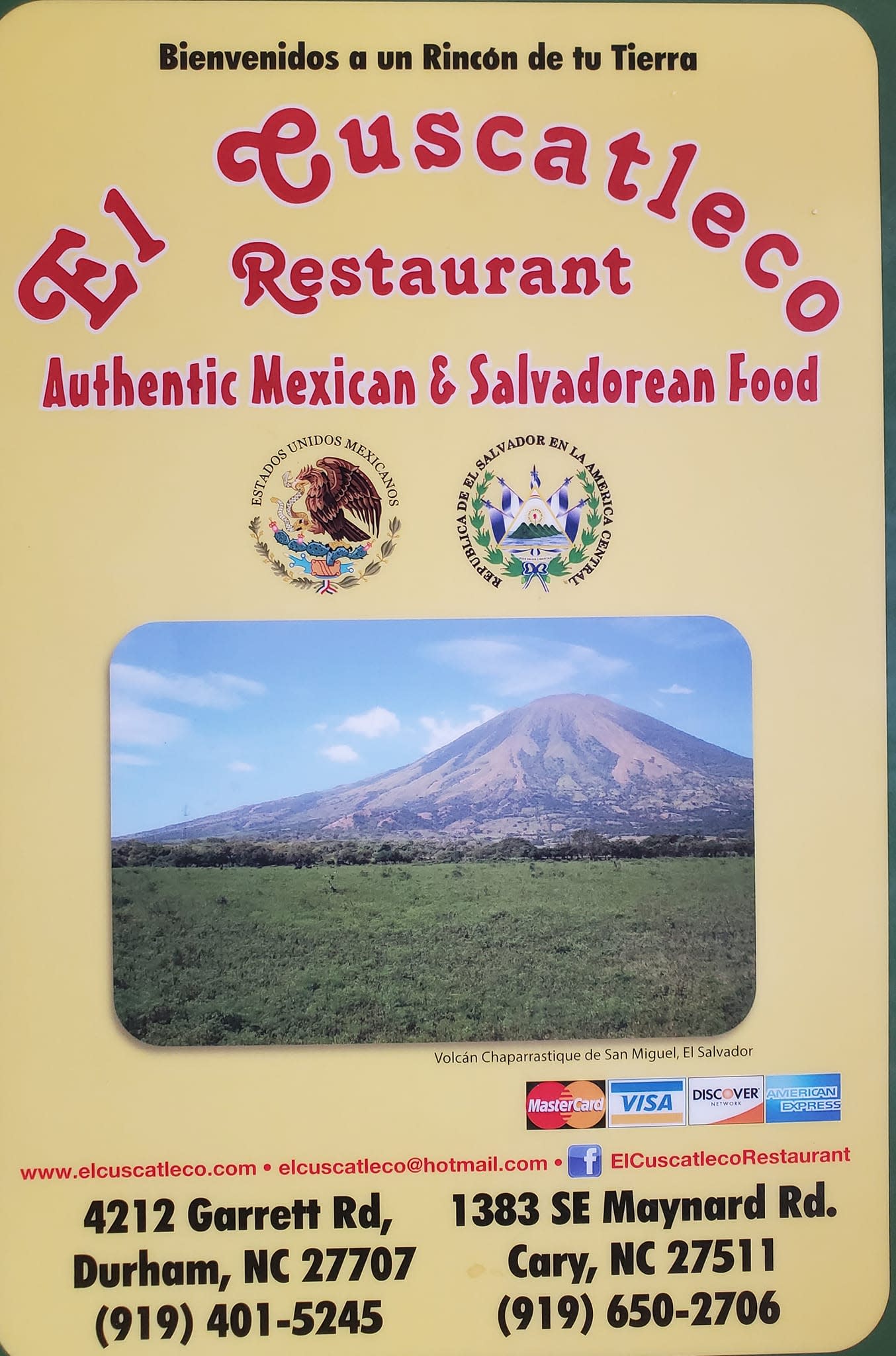 El Cuscatleco brings a taste of El Salvador to Greater Raleigh. With authentic taste and atmosphere family and friends will have a memorable and enjoyable culinary dining experience. They serve 100% authentic Latin dishes, vegetarian meals, soups, Salvadoran combination platters, Mexican combination platters and numerous other delightful dishes. Come in for the great food and fun!