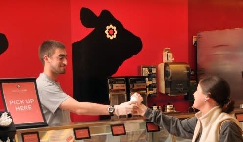 The Creamery, located in D.H. Hill Library at North Carolina State University, serves "Howling Cow" premium ice cream made at N.C. State. In addition to hand-scooped ice cream, you can also get specialty sundaes such as the Wolfpack Sundae, as well as milkshakes made with three large scoops of ice cream, fresh heavy cream and a dash of vanilla.