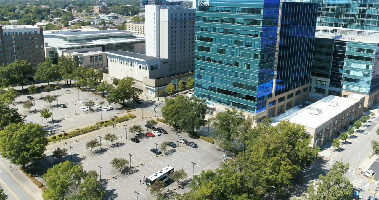 The two sites are vacant and are currently used for street-level parking directly in front of Duke Energy Center for the Performing Arts. Both lots are adjacent to Raleigh Convention Center.