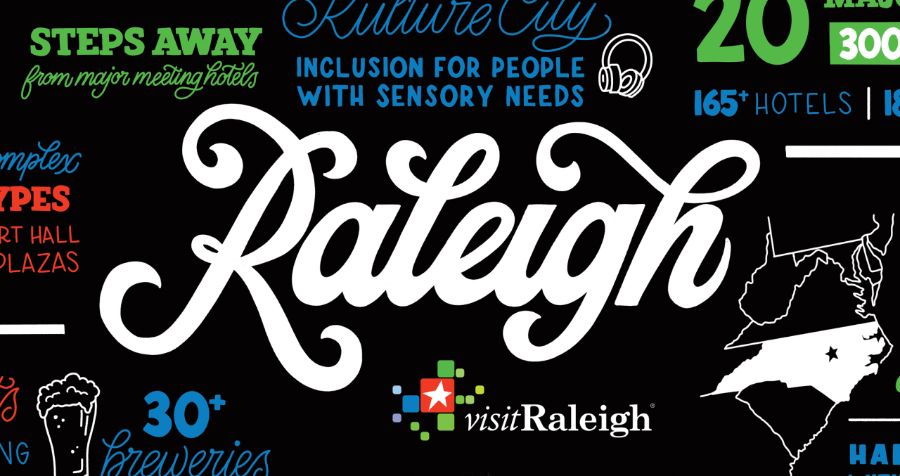 That's when we discovered Amber Share. Amber is an illustrator specializing in hand-lettering, and she happens to live in Raleigh. She has published several books, has experience in tourism and economic development, and because she lives here, she understands our destination.