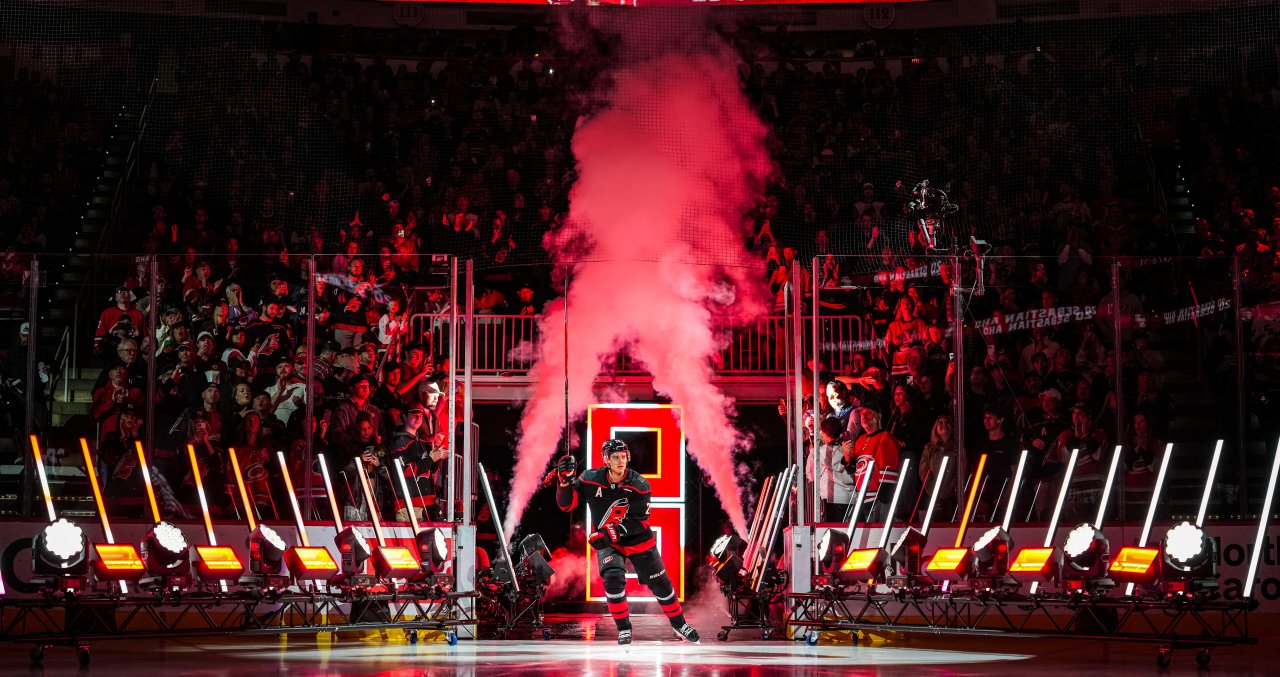 That success is translating off the ice, too, in the form of a long streak of sellout crowds. The streak stood at 117 straight games coming into the 2025-26 season, and it has continued unbroken this year. Along with the team’s success, a big reason crowds keep turning out is that the Hurricanes put on a capital-S Show every game with video screens, special effects, music and in-game lights, camera, action.