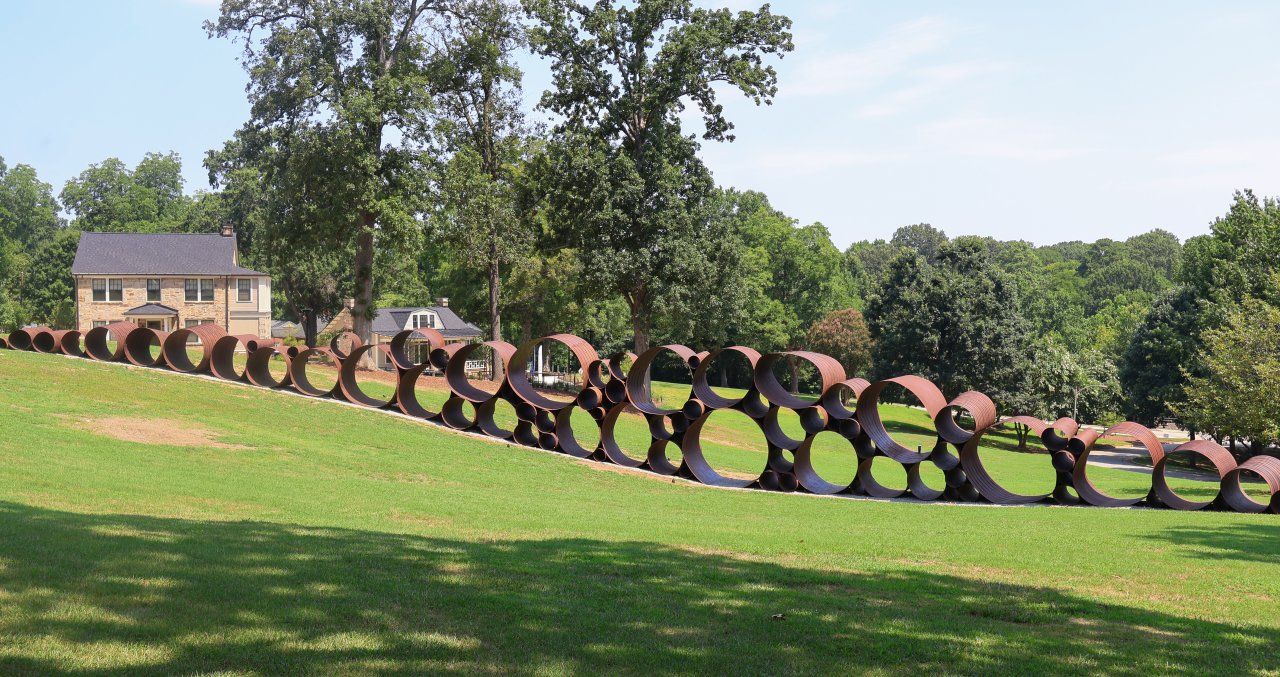 “People do climb on it even though it’s not encouraged,” City of Raleigh public art director Kelly McChesney says of “Attun.” “I had seen this piece and other works of his in the past, all these steel tubes. But it’s so much more impressive in-person where you can see how big and interactive it is with people walking through it or sitting in various tubes. It’s a beautiful piece that people enjoy being a part of. I love how participatory it is.”